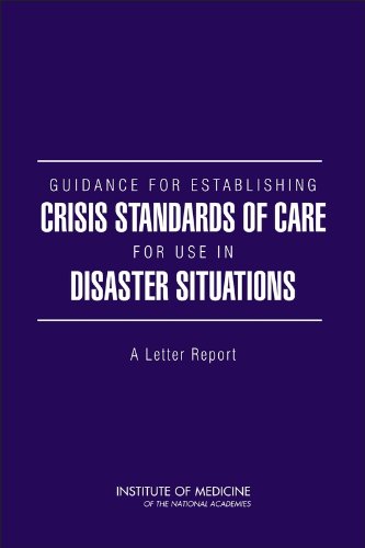 Guidance for Establishing Crisis Standards of Care for Use in Disaster Situations draws from a broad spectrum of expertise--including state and local public health, emergency medicine and response, primary care, nursing, palliative care, ethics, the law, behavioral health, and risk communication--to offer guidance toward establishing standards of care that should apply to disaster situations, both naturally occurring and man-made, under conditions in which resources are scarce.