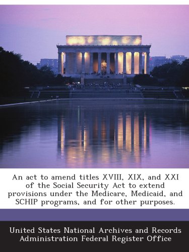 Read An act to amend titles XVIII, XIX, and XXI of the Social Security Act to extend provisions under the Medicare, Medicaid, and SCHIP programs, and for other purposes. book online now. You also can download other books, magazine and also comics. Get online An act to amend titles XVIII, XIX, and XXI of the Social Security Act to extend provisions under the Medicare, Medicaid, and SCHIP programs, and for other purposes. today. Are you Looking Download or read An act to amend titles XVIII, XIX, and XXI of the Social Security Act to extend provisions under the Medicare, Medicaid, and SCHIP programs, and for other purposes. for free..? enjoy it.