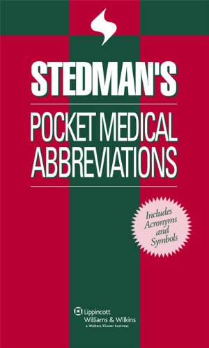Stedman's Pocket Medical Abbreviations contains over 30,000 entries for medical language specialists who need a quick, reliable guide to the spelling and meanings of abbreviations, acronyms, and symbols. This pocket-sized and affordable version of Stedman's Abbreviations, Acronyms & Symbols, Third Edition focuses on the most commonly used abbreviations in all medical specialties. All entries have been thoroughly reviewed for accuracy and currency. The Joint Commission on Accreditation of Healthcare Organization's and the Institute for Safe Medication Practices's dangerous and "do not use" abbreviations are clearly identified in red.
